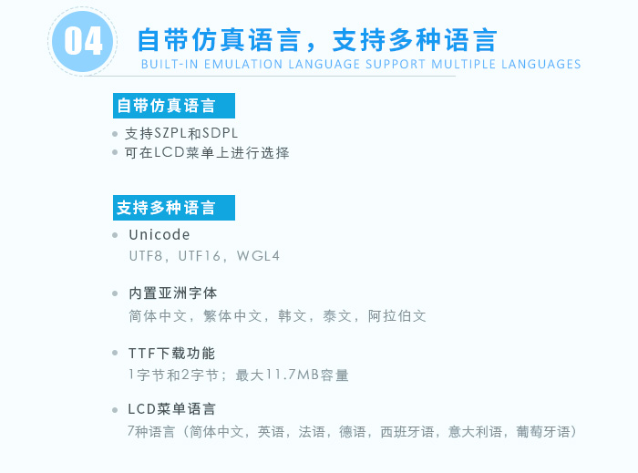 新一代打印引擎含有雙色LCD和LED顯示器,方便作業(yè)者即便遠離打印設備也能輕松獲知打印狀態(tài)。只通過LCD屏控制就可進行獨立打印操作。無需軟件工具,客戶可通過SD卡/U盤,下載/上傳字體、打印設置;可通過網(wǎng)頁瀏覽器遠程設置打印機。